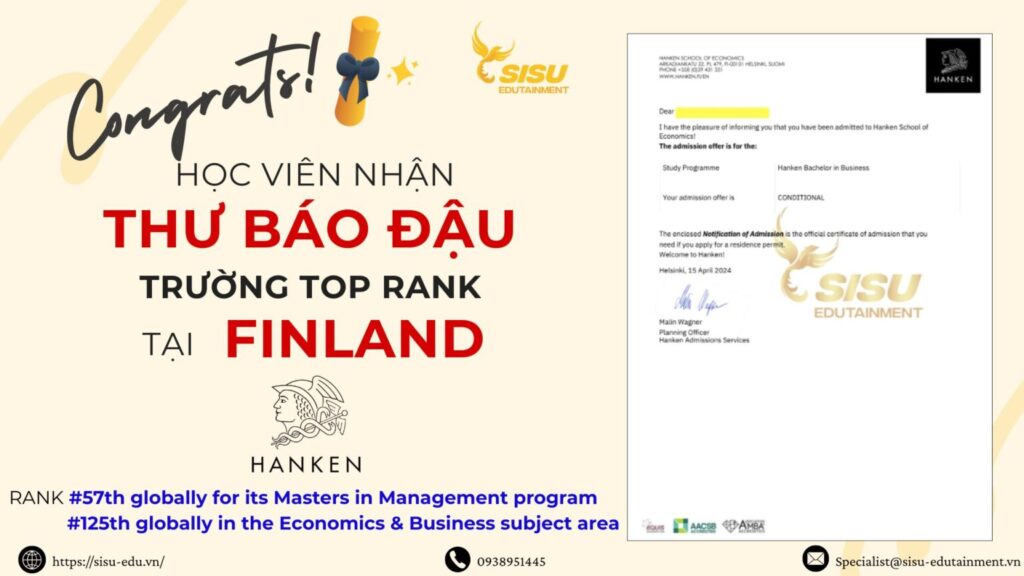 👉 Nếu bạn cũng mong muốn chinh phục những ngôi trường top như Hanken, hãy để SISU EDUTAINMENT đồng hành và xây dựng chiến lược học tập phù hợp cho bạn.