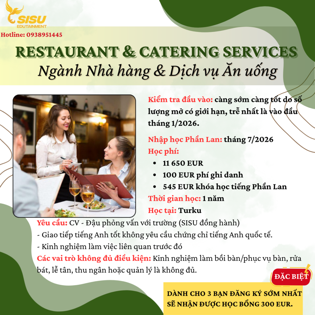 🎓 NGÀNH NHÀ HÀNG & DỊCH VỤ ĂN UỐNG – CƠ HỘI HỌC TẬP TẠI PHẦN LAN VỚI SISU EDUTAINMENT