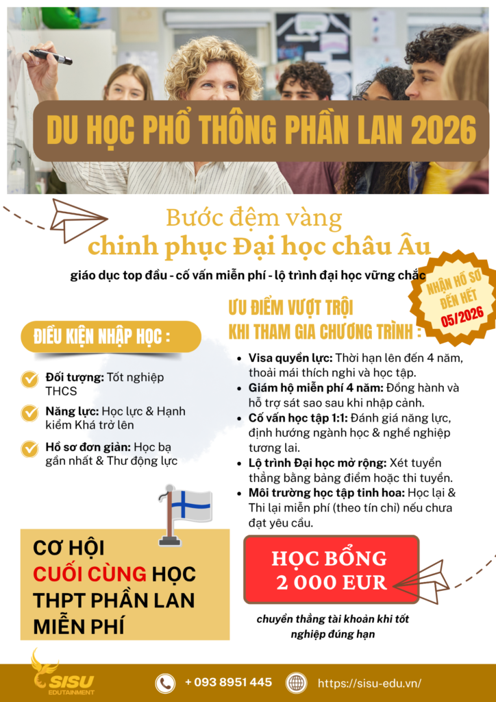 Cánh cửa du học THPT Phần Lan 2026 đang rộng mở. Đừng bỏ lỡ cơ hội vàng này! Hãy liên hệ ngay với SISU để được tư vấn lộ trình 1-1 chi tiết nhất: