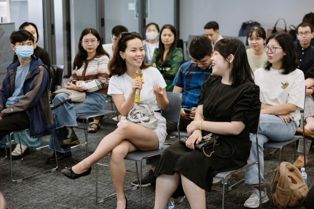 Cô Thư đã dành nhiều thời gian trao đổi, kết nối và chia sẻ cùng các bạn trẻ quan tâm đến hành trình học tập – làm việc tại châu Âu.