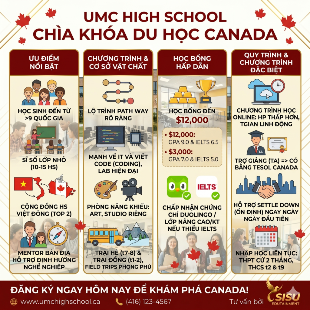 Bạn đang tìm kiếm một ngôi trường cấp 3 tại Canada có môi trường hỗ trợ tận tâm, cộng đồng người Việt đông đảo và lộ trình học tập cực kỳ “dễ thở”? UMC High School chính là câu trả lời mà bạn đang tìm kiếm!